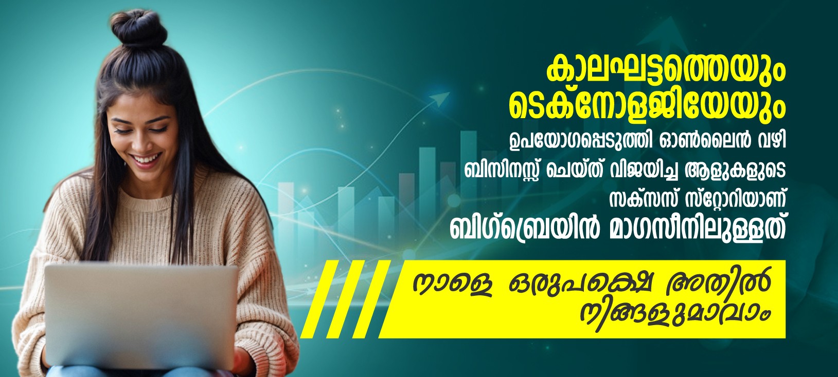 കാലം മാറി, ടെക്നോളജി മാറി, ബിസിനസ്സ് ചെയ്യുന്ന രീതി മാറി... ഇന്നത്തെ കാലത്ത് ഒരു മൊബൈൽ ഫോൺ അല്ലെങ്കിൽ ഒരു സോഷ്യൽ മീഡിയ പേജ് മതിയാകും ലോകമെങ്ങും ബിസിനസ്സ് നടത്താൻ. ഇന്നത്തെ വിജയകരമായ സംരംഭകരുടെ വലിയൊരു വിഭാഗവും ഓൺലൈൻ പ്ലാറ്റ്ഫോമുകൾ ഉപയോഗിച്ച് സ്വന്തം ബിസിനസ്സ് സാമ്രാജ്യം കെട്ടിപ്പെടുത്തിയവരാണ്. അവരുടെ യാത്ര, അവരുടെ വിജയം, അവരുടെ പ്രേരണ... ഇതൊക്കെയാണ് Big Brain Magazine നിങ്ങളിലേക്കെത്തിക്കുന്നത്. ഒറ്റക്കും, കൂട്ടായും, ഓൺലൈൻ ടെക്നോളജിയുടെ ശക്തി ഉപയോഗിച്ച് ബിസിനസ്സ് വിജയിച്ചവരുടെ യഥാർത്ഥ കഥകൾ. ഇനി ബിസിനസ് തുടങ്ങാൻ സ്വപ്നം കാണുന്ന പുതിയ തലമുറയ്ക്ക്, ഈ കഥകൾ ഒരു ദിശാബോധവും പ്രചോദനവും ആകട്ടെ... ഈ കഥയിൽ ഒരു പക്ഷെ നാളെ നിങ്ങളും ഉണ്ടാവാം .....
