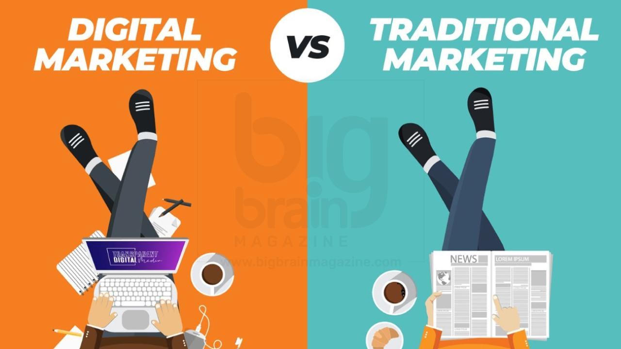 ബിസിനസ്സിന്റെ കാഴ്ചപ്പാടിൽ ആധുനിക മാർക്കറ്റിങ്ങ് ആണ് ഇന്നത്തെ മത്സരാധിഷ്ഠിത ലോകത്ത് ഏറ്റവും കൂടുതൽ ഗുണം നൽകുന്നത് കാരണം ഇവ വേഗത്തിൽ ലീഡുകൾ നേടാനും, ഓൺലൈൻ ഉപഭോക്താക്കളുമായി ശക്തമായ ബന്ധം സ്ഥാപിക്കാനും, ഡാറ്റ അടിസ്ഥാനത്തിലുള്ള തീരുമാനങ്ങൾ എടുക്കാനും സഹായിക്കുന്നു. എന്നാൽ വ്യാപകമായി ഒരു ബ്രാൻഡിനെക്കുറിച്ച് പൊതുജനങ്ങളിൽ വിപുലമായ അവബോധം സൃഷ്ടിക്കാൻ ആഗ്രഹിക്കുന്ന ബിസിനസ്സുകൾക്ക് പരമ്പരാഗത മാർക്കറ്റിങ്ങ് ആണ് കൂടുതൽ ഗുണകരമാവുക.