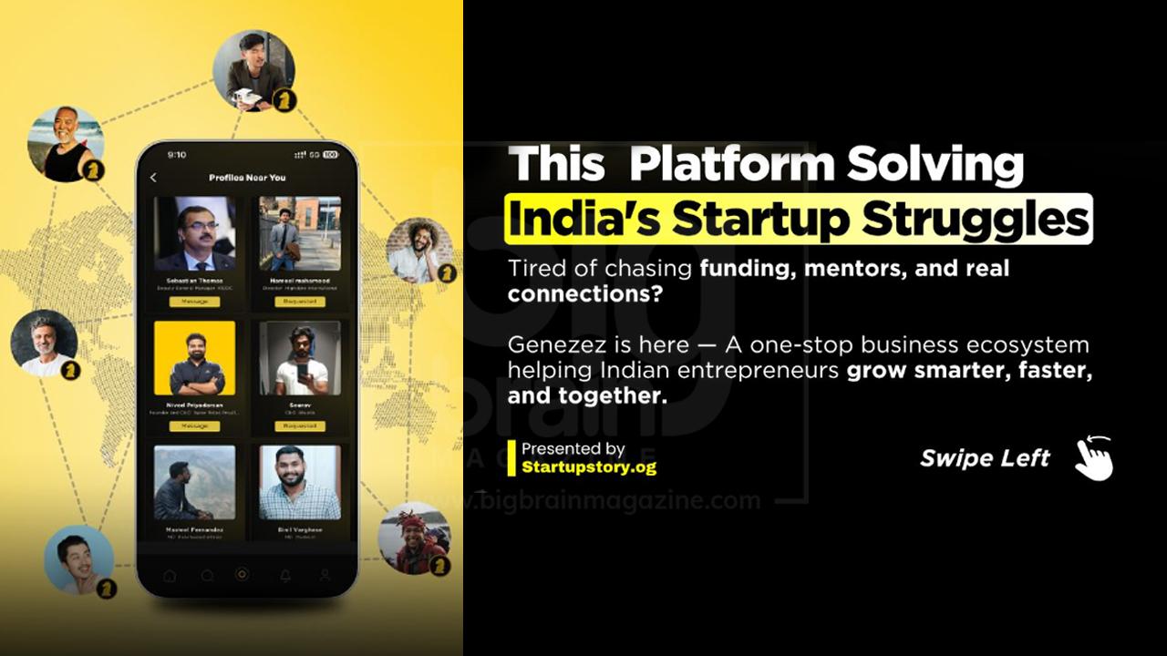 Networking is a hugely important part of the business world. Genezez, a social networking platform created by Ernakulam natives Aiju T. Biju and Atul Peter, is a platform for entrepreneurs to connect and grow with each other. Designed exclusively for entrepreneurs, startups, and business leaders, this platform aims to empower users by providing a platform for networking, investing, collaboration, and knowledge exchange. Big Brain Magazine presents you with this innovative initiative in this issue.