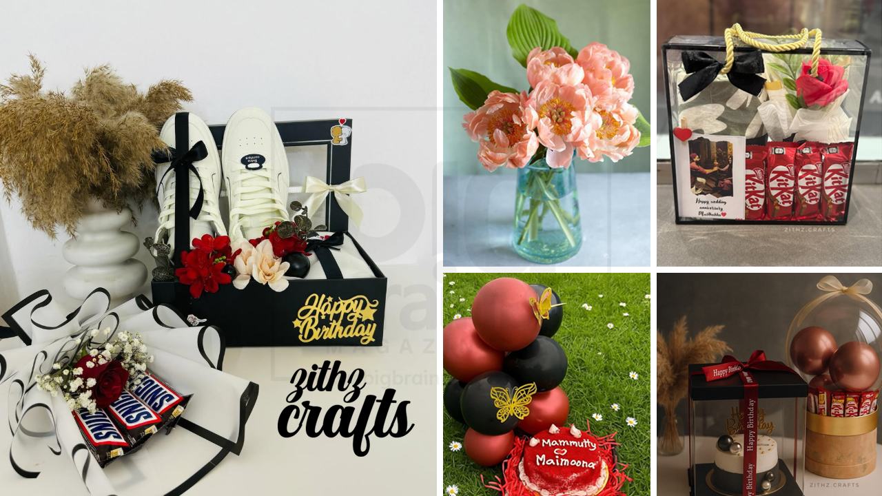 Many of the passions of youth fade from many people’s lives as they enter into responsibilities. But for some, turning that passion into a source of income can become the most satisfying path in life. One such person is Shirin Sithara, a native of Chavakkad, Thrissur. Currently living in Bahrain, Shirin successfully runs her venture under the name @zithz.crafts. In this issue, Big Brain Magazine presents the story of Shirin Sithara, a Handmade Personalized Gift Maker who makes and sells products like hampers, resin art, bottle art, customized frames, save the date designs, logos and many more.